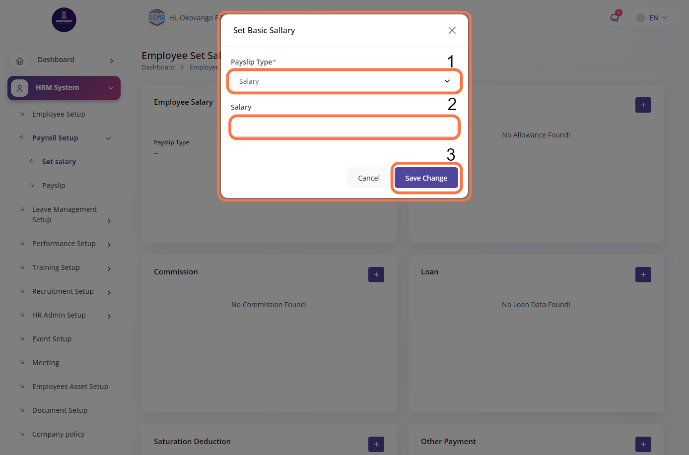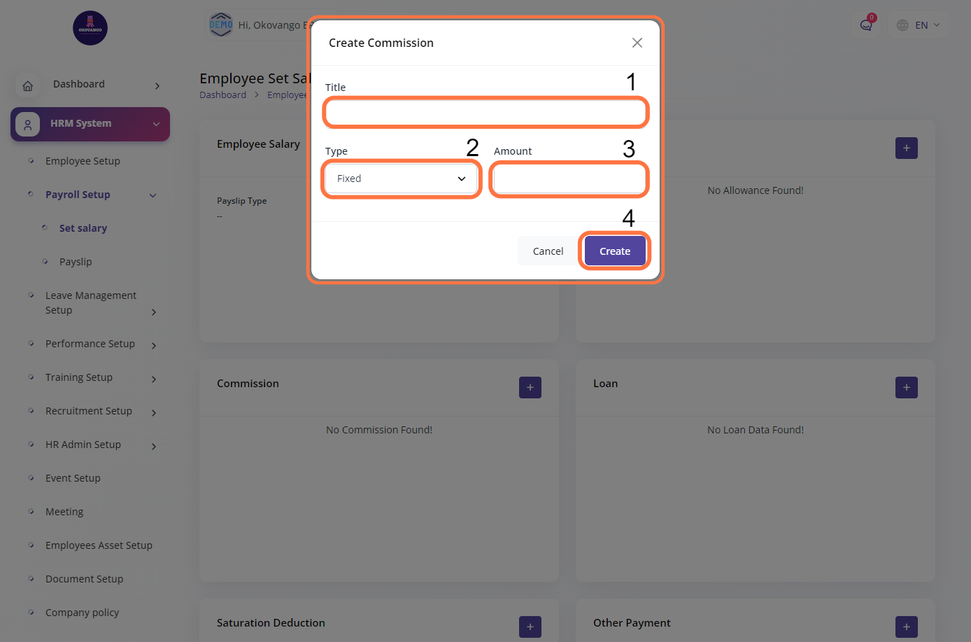 After clicking the create button, you can proceed to set up an employee's salary by following these steps: