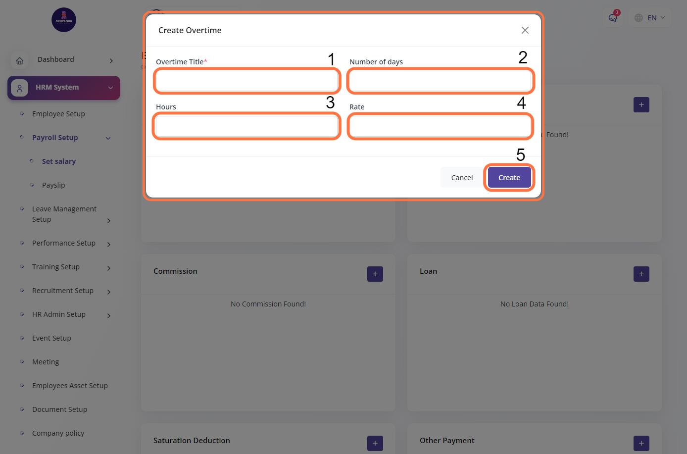 After clicking the create button, you can proceed to set up overtime by following these steps: