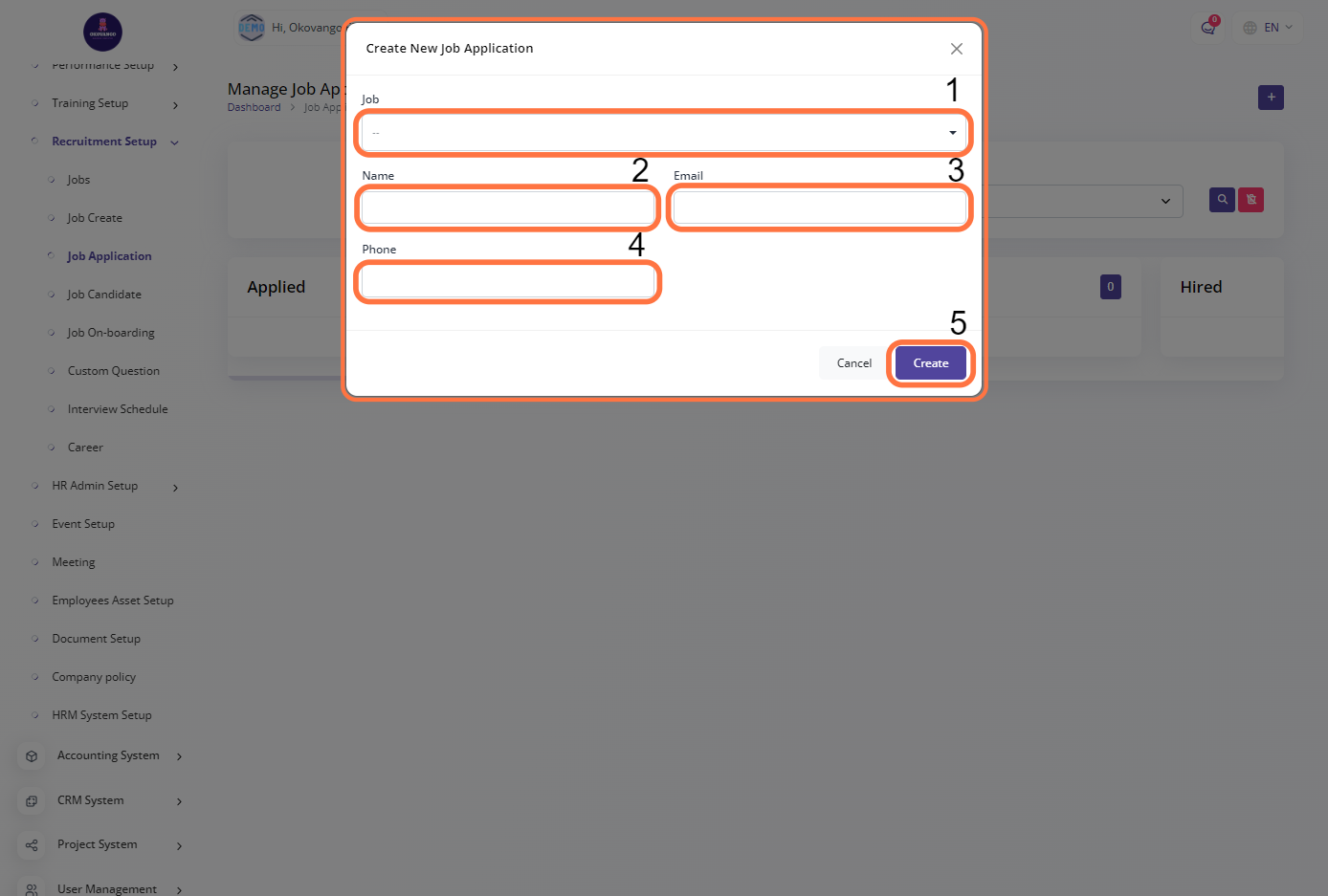 After clicking the create button, you can proceed to set up the job application using the following steps: