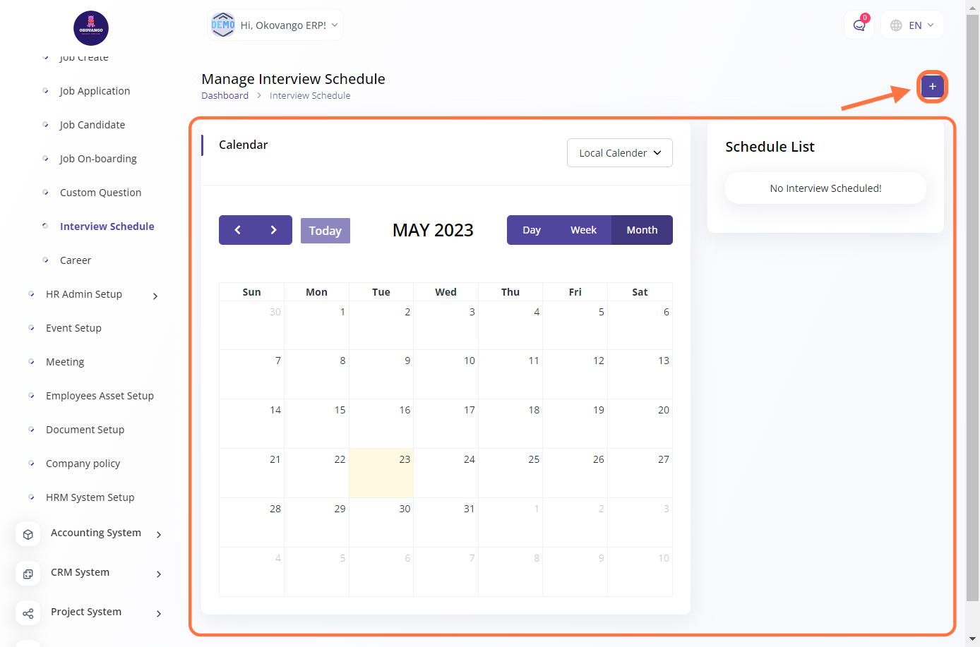 After clicking the create button, you can proceed to set up an interview schedule by following these steps: