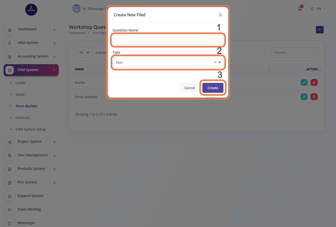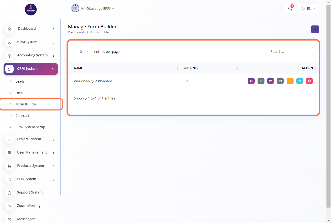 In the CRM form builder section, you can create and customize forms that are used for capturing customer data and interactions within your customer relationship management (CRM) system. This feature provides a user-friendly interface where you can design and configure forms according to your specific requirements. You can add various form fields such as text fields, dropdown menus, checkboxes, and more to collect the necessary information from your customers. By creating custom forms, you can streamline data collection, ensure consistency, and tailor the form fields to align with your CRM processes and data needs.